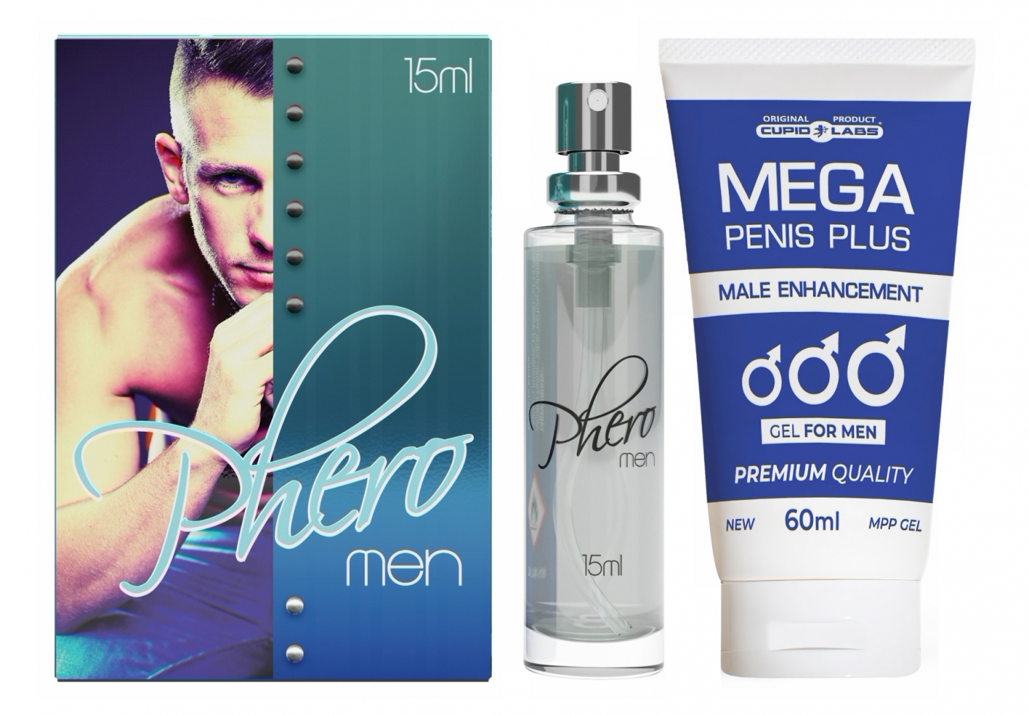 Descriere Pachet Parfum cu Feromoni Pheromen 15ml Și Gel Mărire Penis Mega Penis Plus 65ml: