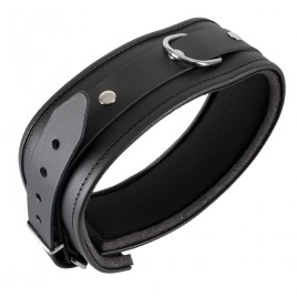 Zgardă bondage din piele naturală cu inel metalic și cataramă reglabilă la spate. material piele firească groasă.